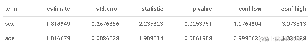 在上一个示例中,sex和和age均被编码为数字变量。 如果存在字符变量,则必须使用model.matrix