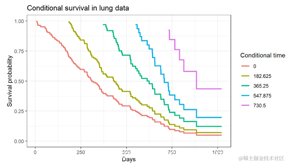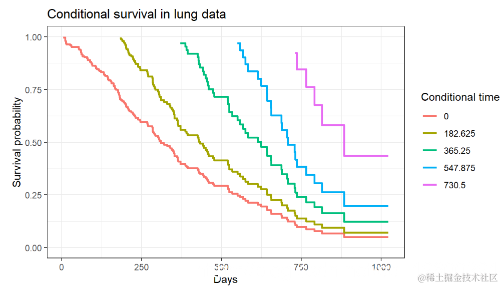 我们还可以根据不同的生存时间长度可视化条件生存数据。