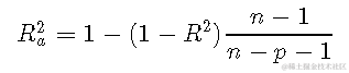 其中n是观察数,p是特征数。因此,调整后的R方可以像这样计算: