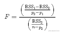 F统计量定义为已解释方差与无法解释方差的比率。为了进行回归,F统计量始终指示两个模型之间的差异,其中模型1(p1)由模型2(p2)的特征子集定义: