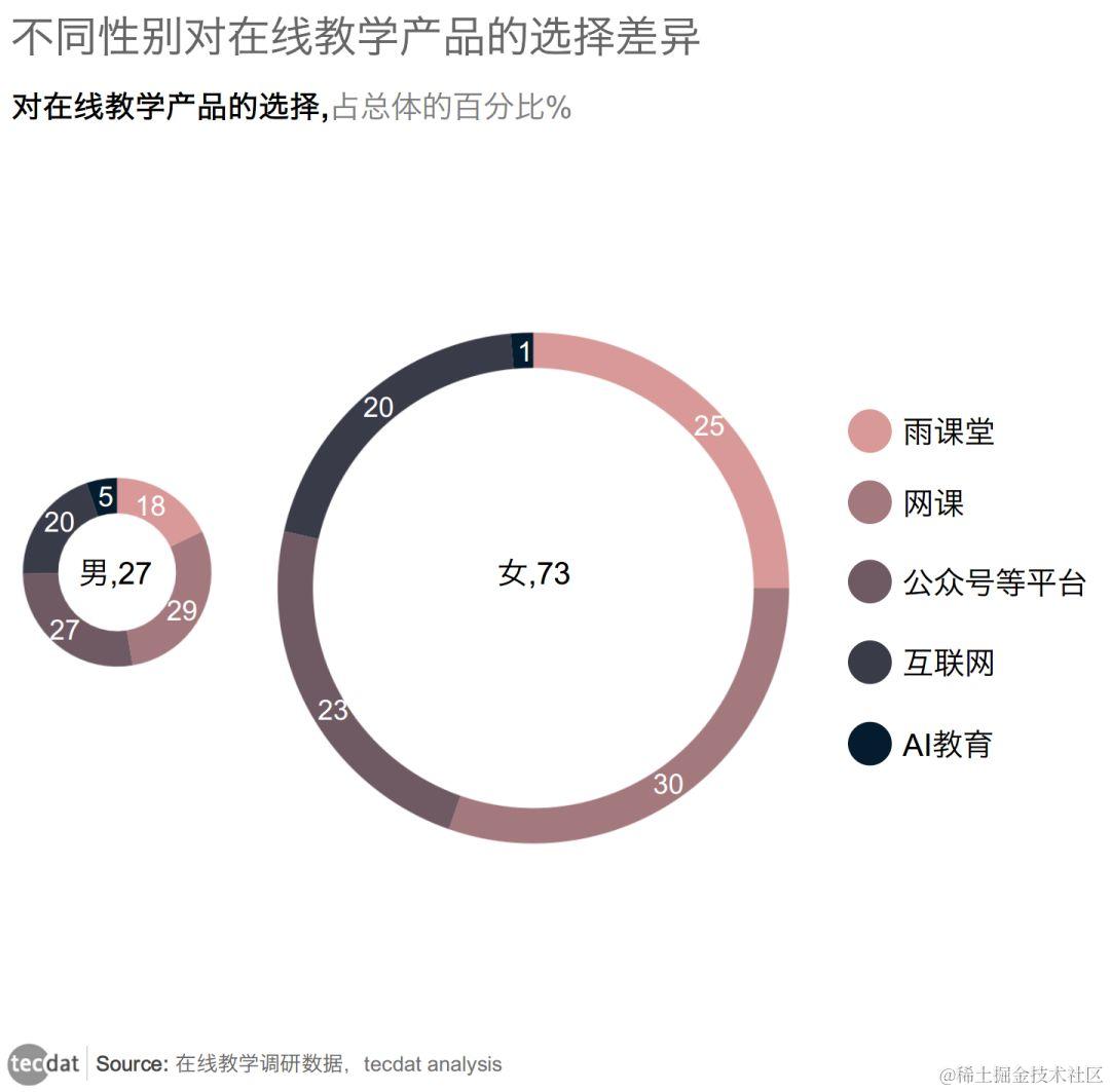 考虑到在线教学产品的种类,图表2显示了不同性别的选择差异。