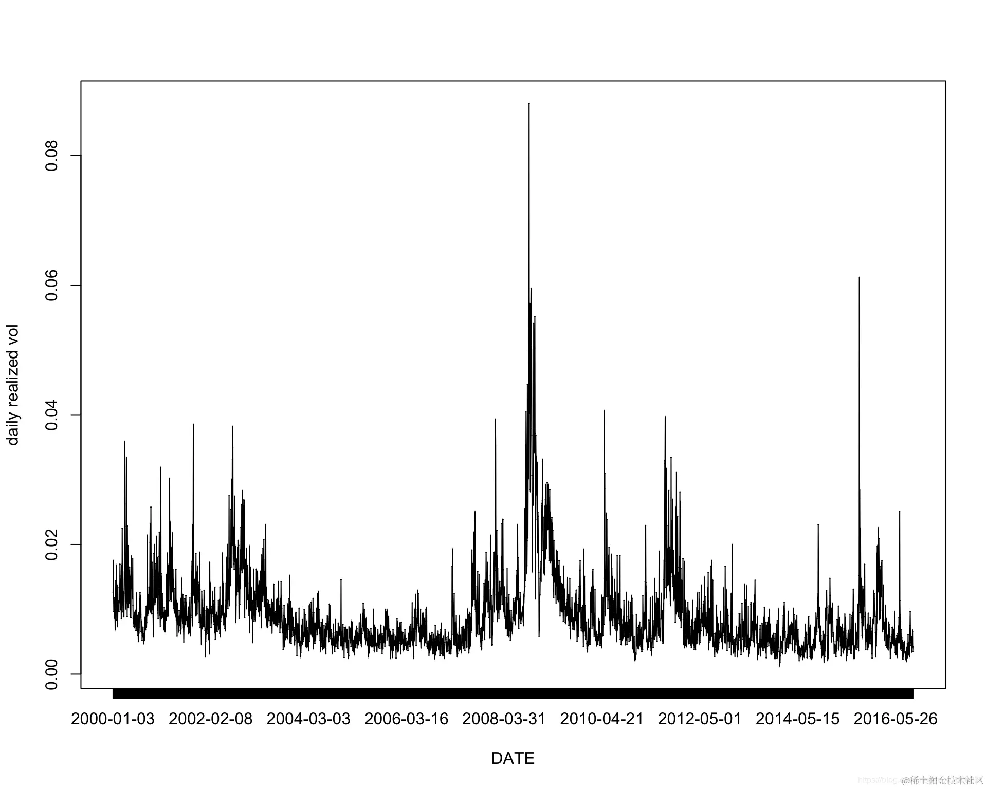 SPXdata$SPX2.rv 是估计的实际方差。 SPXdata$SPX2.r 是每日收益(平仓)。 SPXdata$SPX2.rvol 是估计的实际波动率