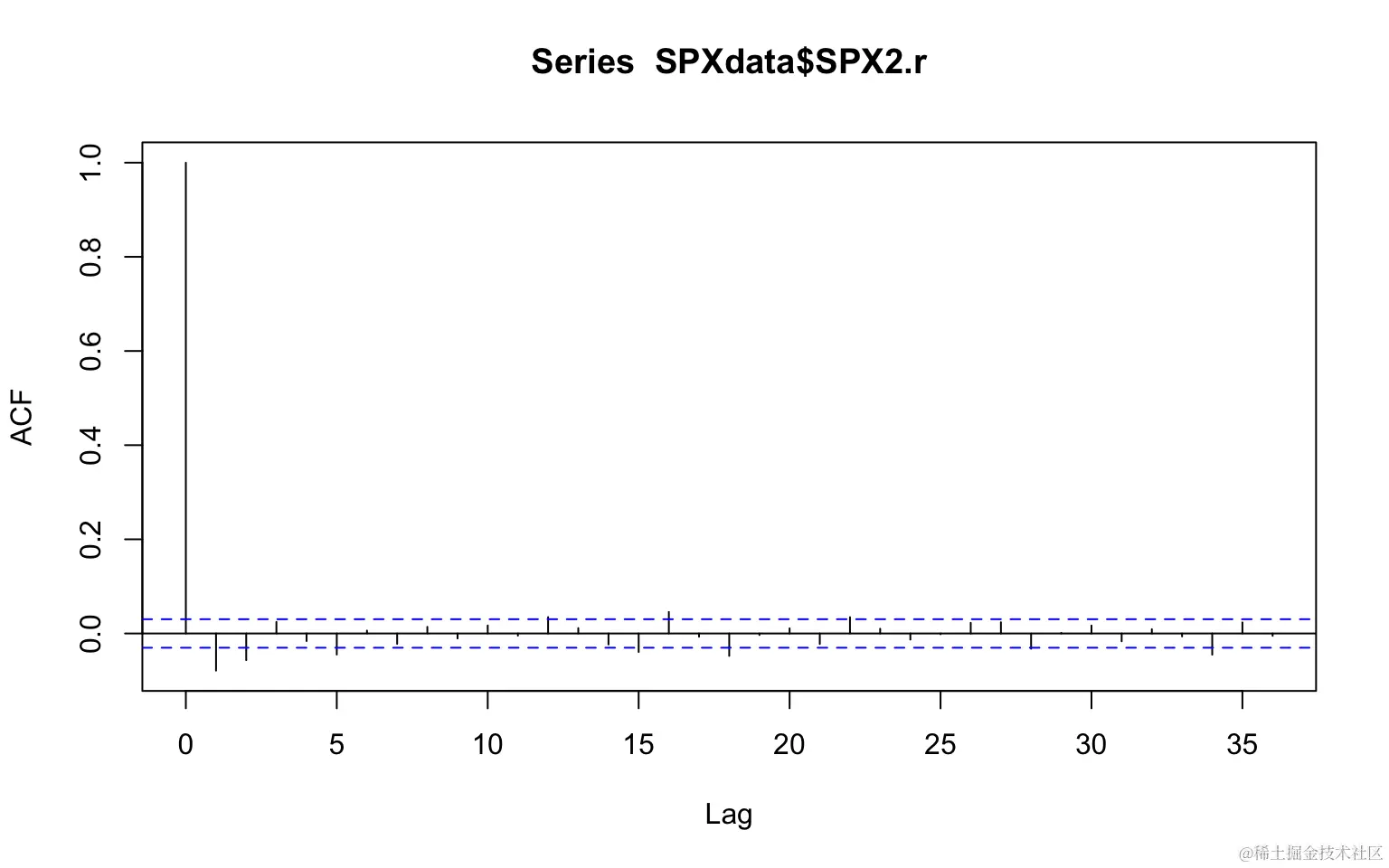 acf(SPXdata$SPX2.r) ##自相关系数图