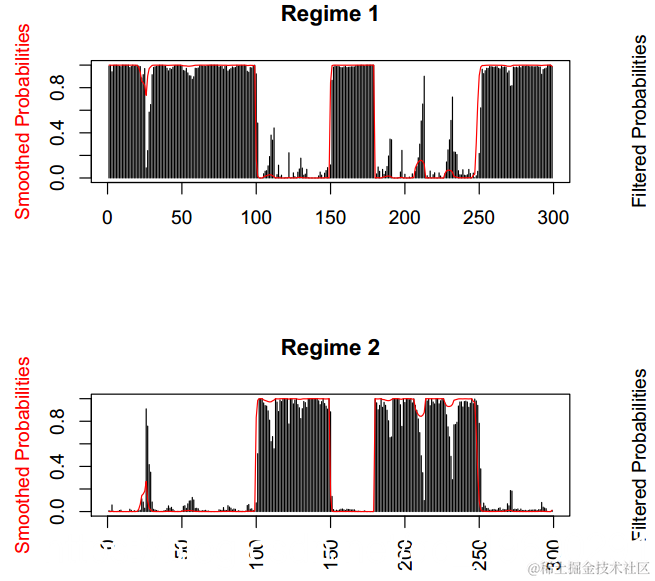下一步,使用拟合马尔可夫转换模型。为了适应广义马尔可夫转换模型,必须包含族参数,而且glm没有标准偏差参数,因此sw参数不包含其切换参数。