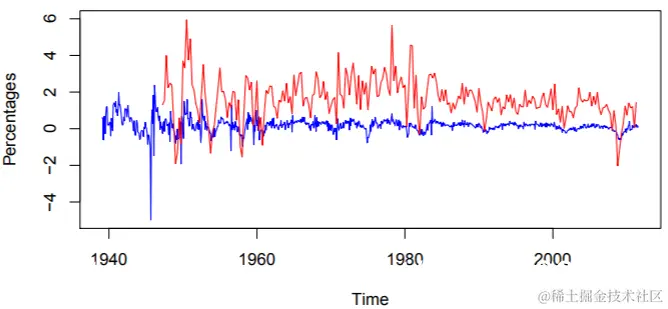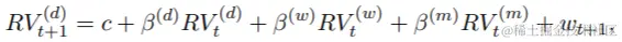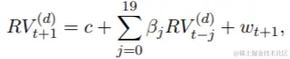 作为另一个演示,我们使用midasr来预测每日实现的波动率。Corsi(2009)提出了一个简单的预测每日实际波动率的模型。实现波动率的异质自回归模型(HAR-RV)定义为