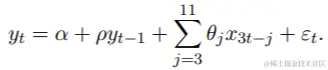 最后两行用于均衡样本大小,样本大小在原始数据中有所不同。我们只需在数据的开头和结尾添加其他NA值即可。数据的图形表示如图3所示。要指定midas_r函数的模型,我们以下等效形式重写它: