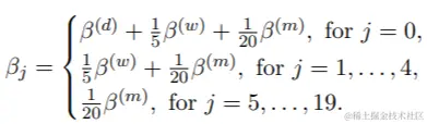 我们假设一周有5天,一个月有4周。该模型是MIDAS回归的特例: