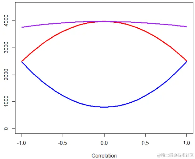 。关联为0时,它与紫色线相同,因此模型很差。关联度接近1时,与具有相同