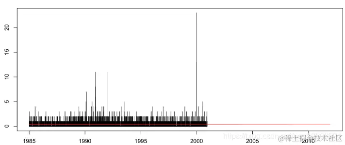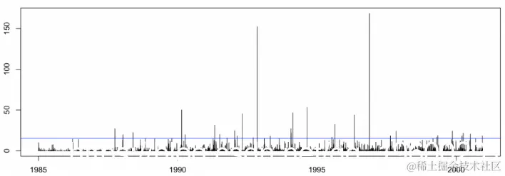 策略是考虑一个低于我们免赔额的门槛,例如1200万。然后,假设损失超过1200万,我们就可以拟合广义Pareto分布,