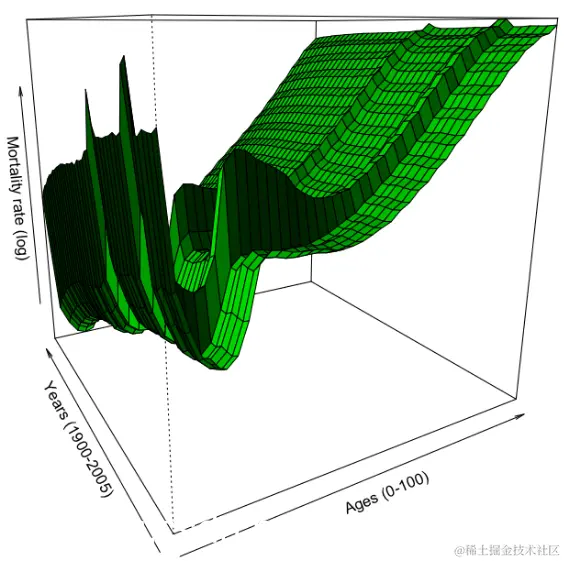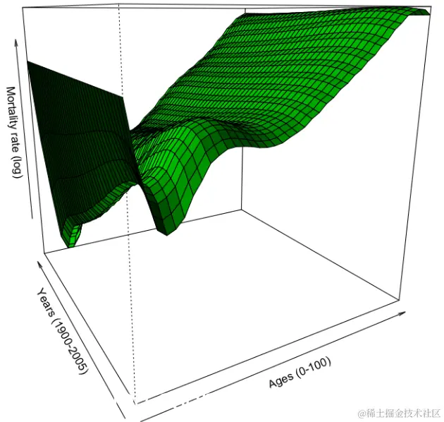 第一个想法可以是使用Poisson模型,其中死亡率是年龄和年份的平稳函数,类似于