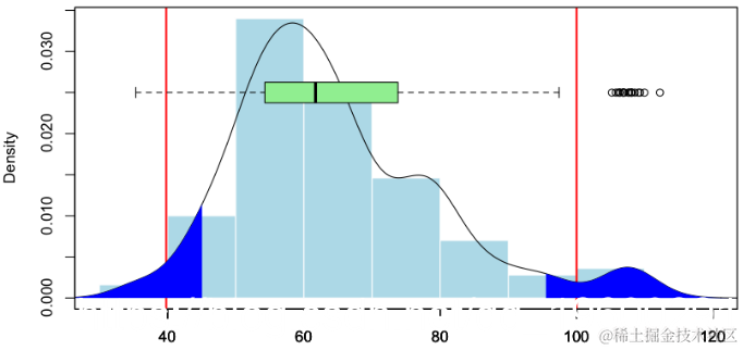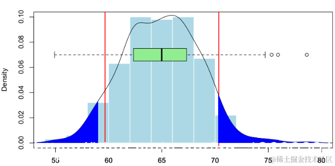 同样,在这里,我们可以比较(以图形方式开始)通过重采样获得的值,以及在正常情况下获得的值,