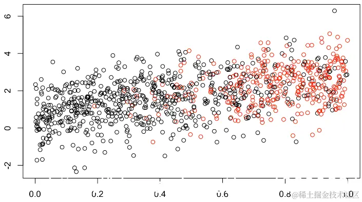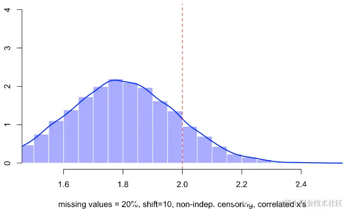 我们在这里模拟数据,然后根据模型生成数据。未定义将转换为NA。一般建议是将缺失值替换为-1,然后拟合未定义的模型。默认情况下,R的策略是删除缺失值。如果未定义50%,则缺少数据,将删除一半的行