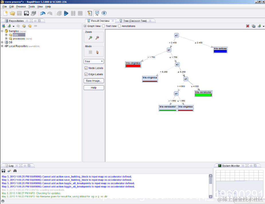 本教程的目的是介绍如何在RapidMiner中创建基本决策树。在本教程中,我将使用“ Iris”默认数据集。