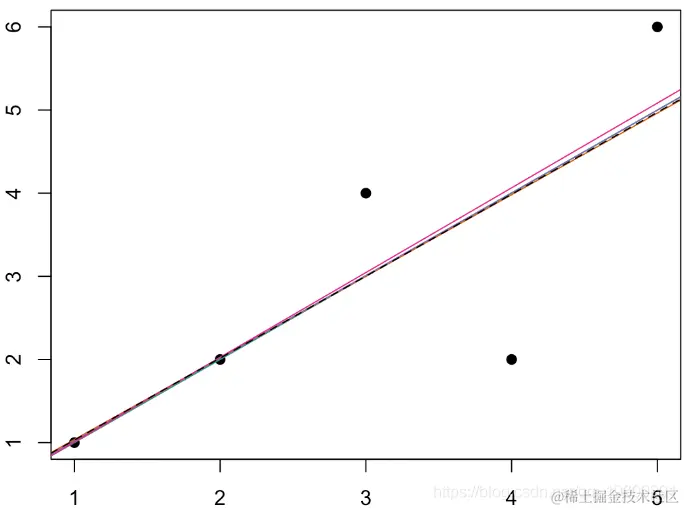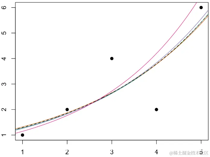 通常,GLM的连接函数可能比分布更重要。为了说明,考虑以下数据集,其中包含5个观察值
