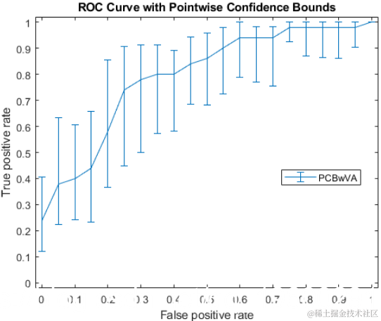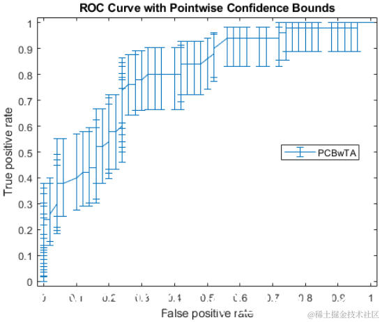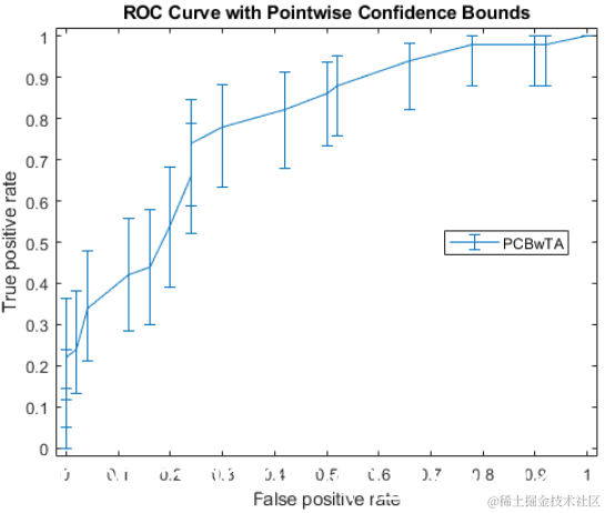 不一定总是可以控制误报率(FPR,X 此示例中的 值)。因此,可能希望通过阈值平均来计算真实正利率(TPR)的逐点置信区间。