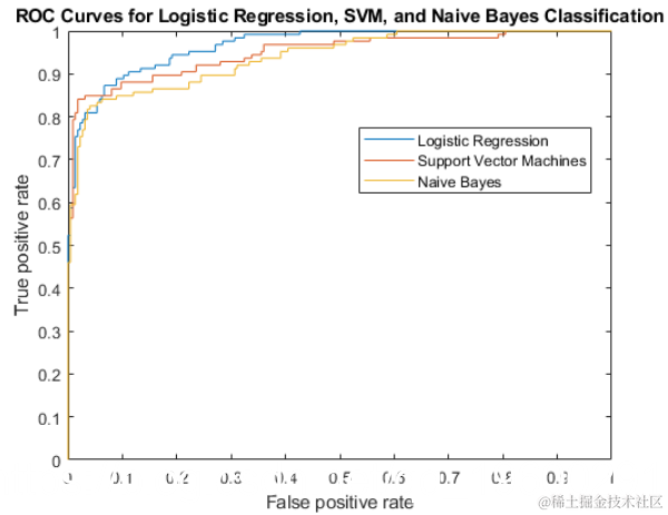 Logistic回归的AUC度量最高,而朴素的贝叶斯则最低。该结果表明,逻辑回归对此样本数据具有更好的样本内平均性能。