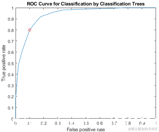 X,默认为假阳性率, Y,默认为真阳性率(召回率或敏感性)。正类标签为 versicolor。由于未定义否定类别,因此 perfcurve 假设不属于肯定类别的观测值属于一个类别。该函数将其接受为否定类。