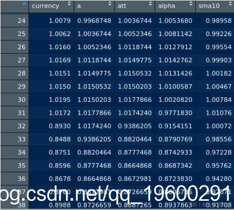 这是我们的数据图。同样,我们看到alpha在t = 22时的震荡前一天向下调整到1.438的水平: