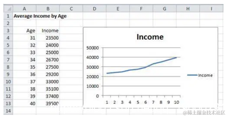 示例2 –根据图2中的数据,为30岁以下人群的平均收入创建折线图。