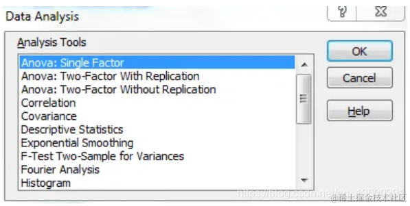 选择 数据>分析|数据分析后 ,将显示图1对话框。