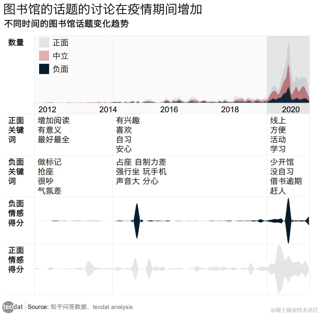 新型冠状病毒导致的肺炎疫情给大学图书馆信息资源建设工作带来了极大影响和冲击,通过时间线的对比,我们发现疫情前后的图书馆话题数量和情感表现发生明显变化。