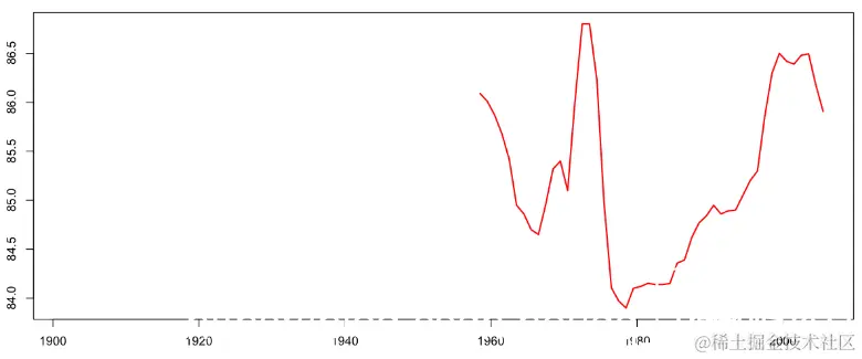 我们可以通过使用Lee-Carter模型对年死亡率进行建模,并推断到当前世纪,我们可以推断出期望剩余寿命。