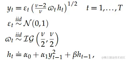 可以通过数据扩充编写具有Student-t改进的GARCH(1,1)模型,用于对数收益率fytg。