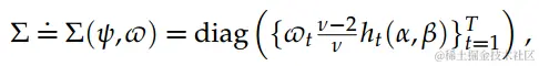 为了编写似然函数,我们定义向量y =(y1,...,yT)0,v =(v1,...,vT)0和a =(.a0,a1)。我们将模型参数重新组合为向量y =(.a,b,n)。然后,在定义T×T对角矩阵时