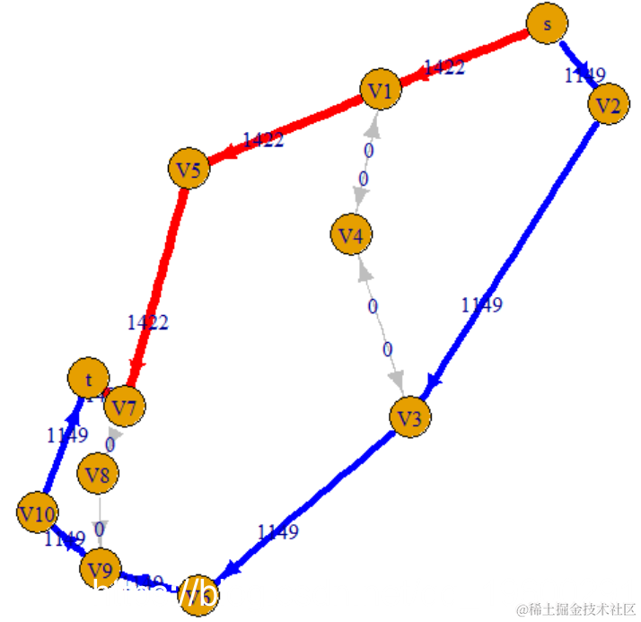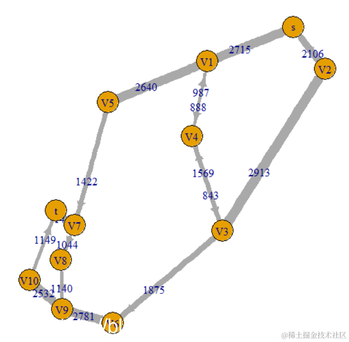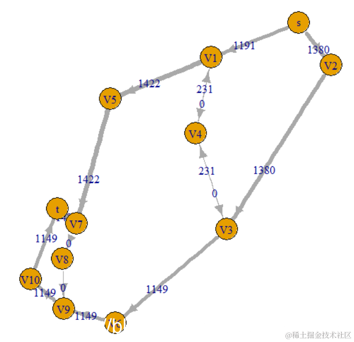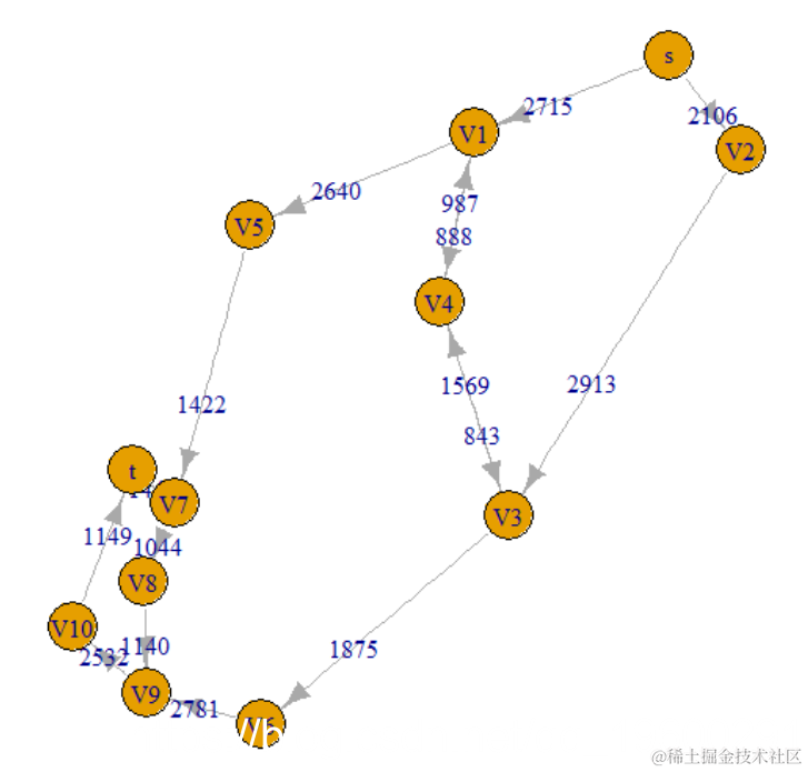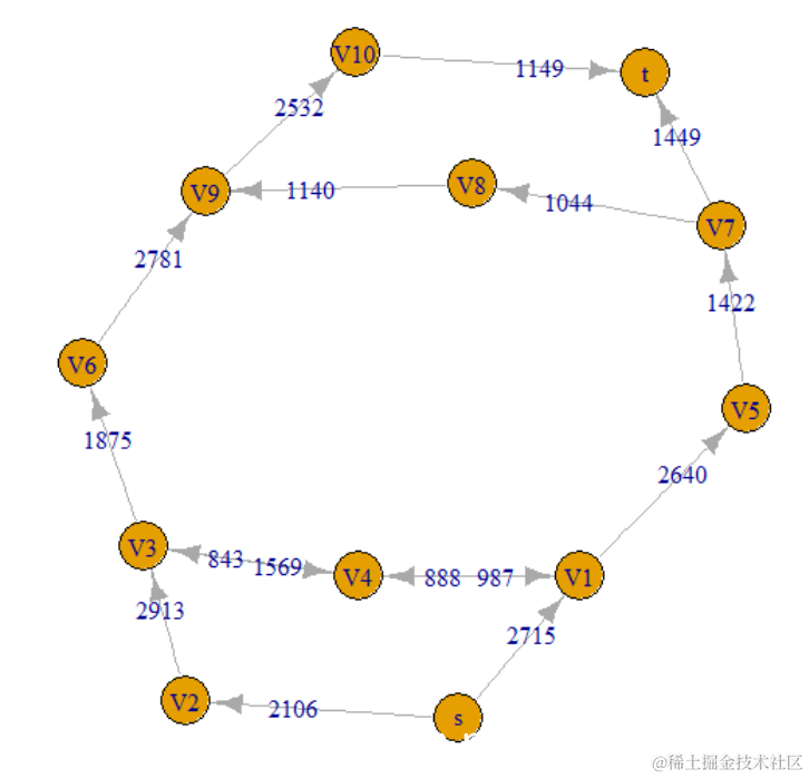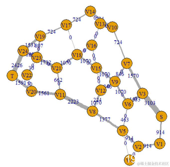 我们的最大流量为2571,这与两篇论文中的最大流量最小割定理以及 最短路径的应用中都实际要求的不同 ,因为表格和图表上的值不同。