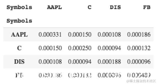 这将使我们能够计算整个投资组合的标准差和收益平均值。