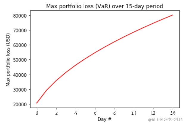 如果我们想在更大的时间范围内计算该怎么办?只需获取1天的VaR并将其乘以 时间段的平方根即可 (这是由于股票收益的标准偏差往往随时间的平方根而增加)。
