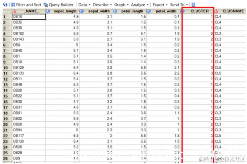 我们可以看到,分析清楚地将三个聚类簇分开。聚类簇1为蓝色, 2为红色, 3为绿色。