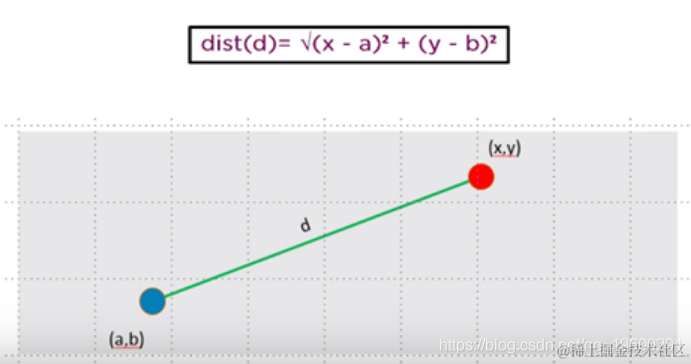距离量度将确定两个元素之间的相似性,并将影响簇的形状。通常,欧几里得距离将用于K-Means聚类