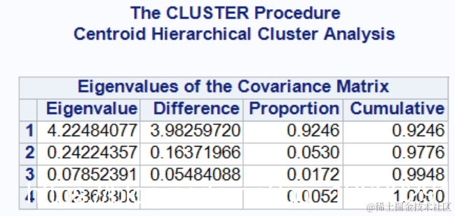 前三个特征值约占总方差的99.48%,因此,建议使用三个聚类。但是,可以在ccc图中对其进行交叉验证。