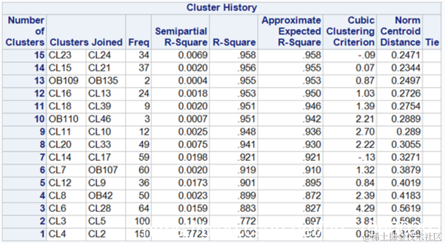 METHOD => 确定过程使用的聚类方法。在这里,我们使用CENTROID方法。