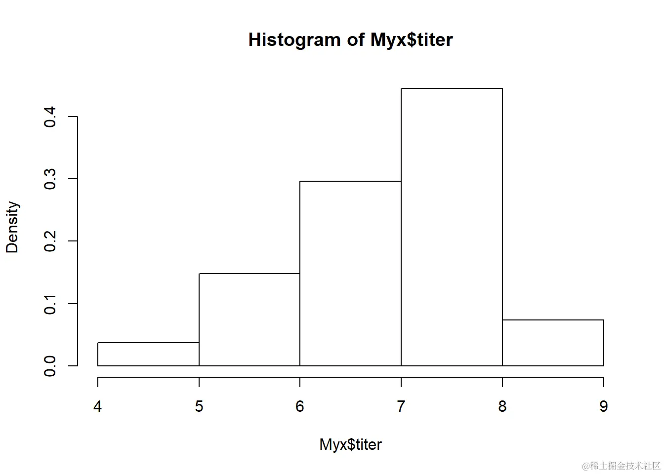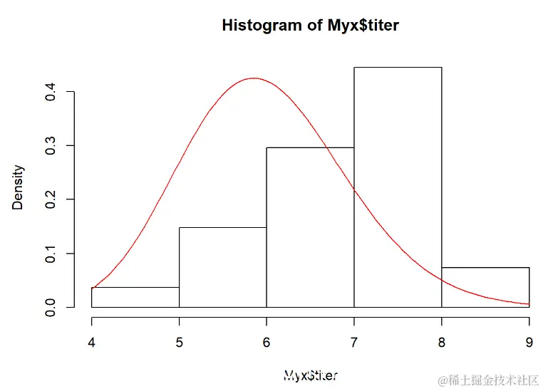 hist(Myx$titer,freq=FALSE)