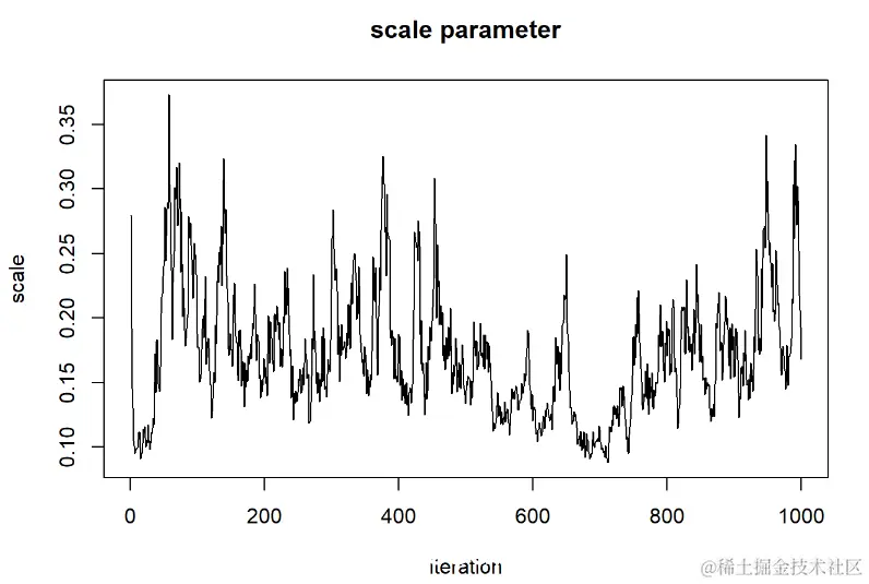 一种简单而直观的收敛诊断程序是 Gelman-Rubin诊断程序,该诊断程序基于简单的蒙特卡洛误差来评估链之间是否比应有的链距更大: