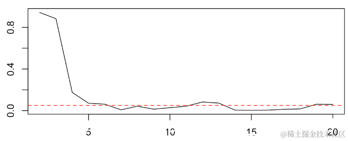 abline(h=.05,col="red",lty=2)