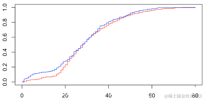 即p值大于10%时,两个分布没有显着差异。