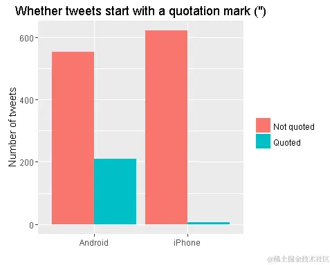 并且对比安卓手机和苹果手机上的推特数量的区别。