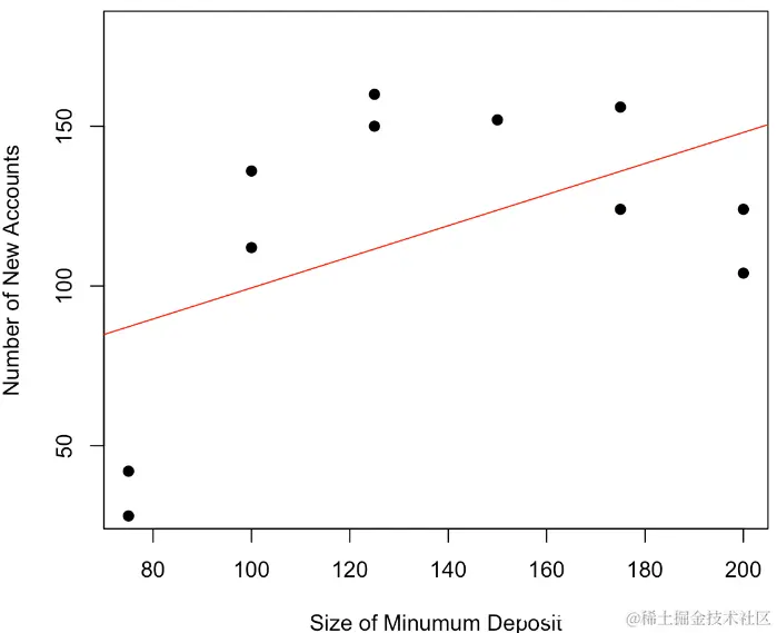 这里只有11个观察值,一个简单的线性模型。让我们对这些数据进行线性回归