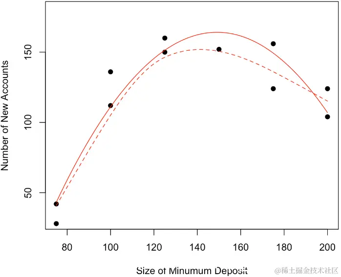 我们可以考虑一个二次模型,换句话说,我们的预测将是 抛物线。