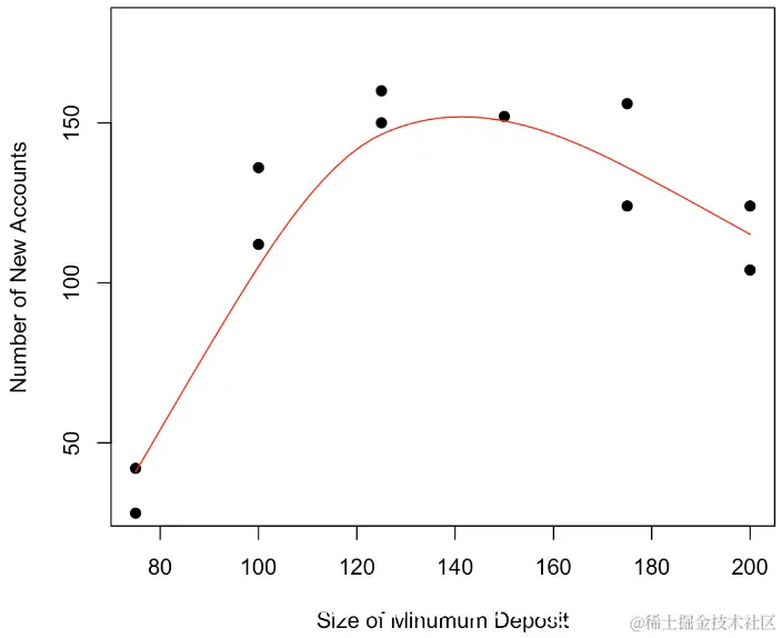 我们可以清楚地看到我们的曲线似乎是凹的,开始时增加,结束时减少,可以进行非参数平滑
