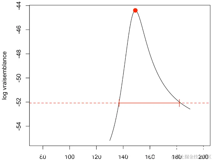 这与我们之前的计算是一致的。第二个方法是分析似然函数:我们说在多元参数中,一个比另一个更重要。在给定θ的情况下,其他函数才最大化。从技术上讲,参数θ的轮廓对数似然是