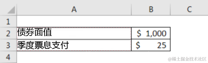 让我们以半年期息票支付的债券为例。让我们假设一家公司已发行面值为1,000元且每季度支付25元利息的债券。计算债券的息票率。