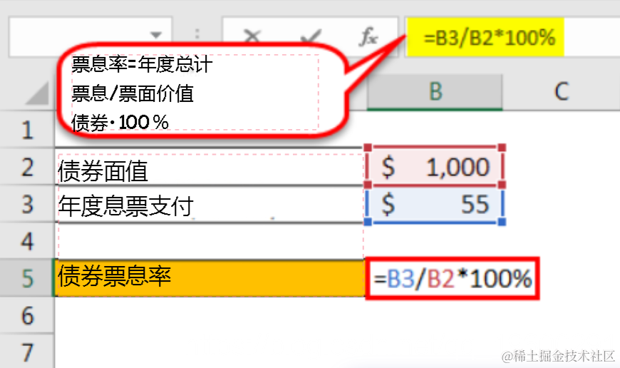 - 步骤3: 最后,如上所示,通过将年票息总额除以债券的面值,再乘以100%,来计算票息率。