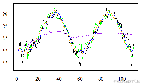 本文我们使用4个时间序列模型对每周的温度序列建模。第一个是通过auto.arima获得的,然后两个是SARIMA模型,最后一个是Buys-Ballot方法。