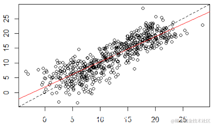 abline(lm(y[ :k]~y[( :k)-52]),col="red")
