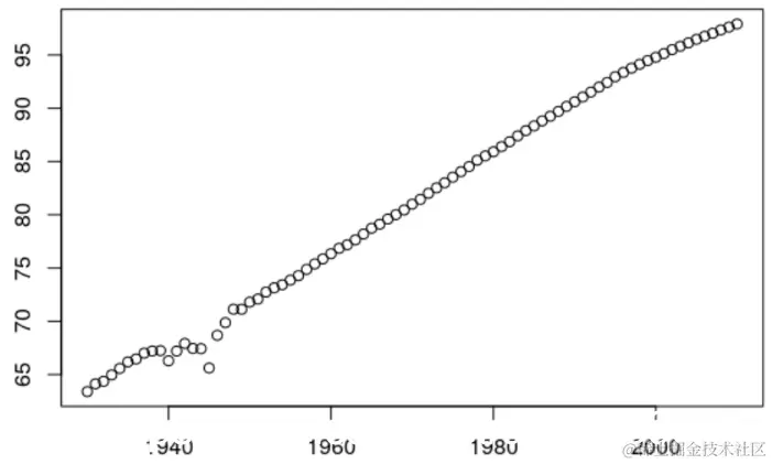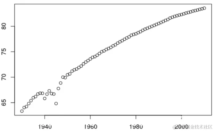 要计算出生时的期望寿命,我们使用以下代码