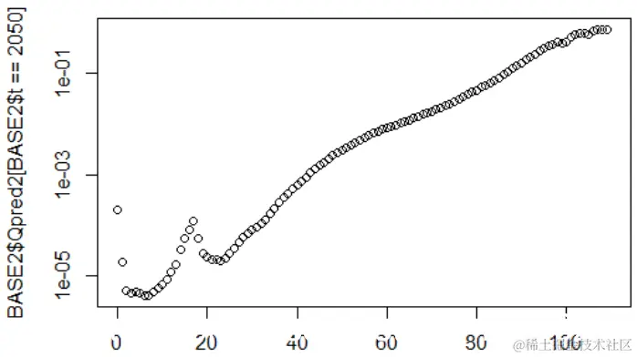 plot(BASE2$x[BASE2$t==2050],BASE2$Qpred1[BASE2$t==